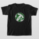 Esta divertida equipe de voleibol colore t-shirt para raparigas com uma equipe personalizada e um nome de mascote escolar apresentam a imagem realística estilizada de um voleibol verde e branco que tem um padrão caleidoscópico floral artístico misturado com os seus painéis verdes - o seu nome e nome de equipe são personalizáveis, como é o seu número de camisola - de katz_d_zynes