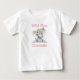 Camisa de Bebê Elefante Rosa Safari Aquarela para 1º Aniversário do Selvagem. Elefante bebê com uma coroa de rosas rosa e flores brancas sentado em cima de folhas botânicas. Texto Rosa. Adicionar Nome.