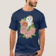 Camiseta Coruja-Celeiro Azul Flores Rosa