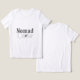 Uma ilustração de corvo com estilo retrô e letras ornamentadas "Nômade", perfeita para roupas boho e inspiradas na natureza. Este gráfico de andarilho combina arte animal minimalista com estética de tatuagem retrô para uma peça única.