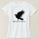 Design preto do corvo. Imagem original do corvo em t-shirt e em outros presentes. Personalize com seu próprio mensagem, nome ou texto. Mude a cor de seu t-shirt selecionando a relação da personalização. Aperfeiçoe o presente incomum para amantes ou aqueles do pássaro com um lado selvagem. O corvo de cadáver preto é um do mais inteligentes, o mais adaptável dos pássaros, frequentemente sem medo, mas pode ser cuidadoso das pessoas. Os pássaros solitários, encontraram geralmente apenas ou em pares.
