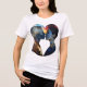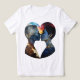 Esta impressão de camiseta mesmerizante reflete o infinito poder do amor e a unidade de duas almas. Silhuetas de amantes cheios de galáxias estreladas juntam-se num beijo, criando uma composição em forma de coração. Matizes cósmicos profundos e moles dão à design uma atmosfera mística, fazer-a uma escolha ideal para românticos, sonhadores e contadores da estética do universo.
