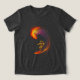 An astronaut in a classic gold spacesuit surfs a vibrant, fiery cosmic wave through the depths of space. The wave, a swirling nebula of oranges, reds, and purples, illuminates the dark, star-filled background. This striking image blends the thrill of surfing with the awe of space exploration, perfect for anyone who dreams of cosmic adventures and pushing boundaries.