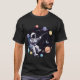 Cósmico Angler: Explore as profundidades do universo enquanto pesca entre as estrelas! Design uma camiseta colorida com um astronauta a balbuciar em uma captura celeste, com planetas e galáxias como pano de fundo."