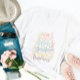 Bonito cores pastéis e uma citação manuscrita com caracteres botânicos desenhados à mão.