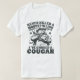 Esta camiseta branca apresenta uma ilustração no estilo de um desenho preto de um leão de montanha vestindo um chapéu de vaqueiro e segurando uma espingarda. O texto "NUNCA MATOU UMA MONTANHA LION" é impresso por cima da ilustração e "EU ESCOLHEI UMA COUGAR" é impresso abaixo. Este design oferece um humor e um pouco ousado encontro com a vida selvagem.