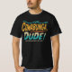 Uma design de camiseta divertida e atraente com a frase Cowabunga, cara! em um vibrante esquema multicolorido.