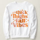Este vibrante e divertido design de outono apresenta a frase divertida e confiante "Thick Thighs Fall Vibes" em uma fonte ousada e inspirada por retratos. O texto é organizado em um layout dinâmico, empilhado, com cada palavra preenchida em tons quentes de outono, incluindo tons de laranja, pêssego e rosa suave. As faíscas em torno da estrela somam um toque de reluzente e brilho, melhorando o sentimento festivo e aconchegante da design. A tipografia é ousada e curventa, dando a ela um apelo vivo e vintage que capta perfeitamente a essência do outono.