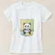 A sweet little panda sits calmly on a soft, two-tone cushion, backed by a big dotted pillow in gentle pastel shades of yellow and green. The cute striped scarf in pink and blue adds a cozy pop of color, while the rounded shapes, rosy cheeks, and clean bold outlines create an irresistibly warm kawaii look.