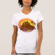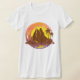 Camiseta Crachá com paisagem vulcânica tropical e palmeiras