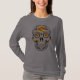 Esta camisa colorida e artística tem um crânio de açúcar laranja, amarelo e roxo com um grande rosa na testa. Camisa de excelente para o Dia das Bruxas ou para a Día de Muertos, também conhecida como Dia dos Mortos. O Dia de Muertos é um feriado mexicano representado pelo crânio do açúcar e homenageia o falecido.