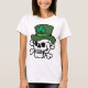Características de design do dia deste St Patrick um crânio que veste um chapéu alto verde grande com um trevo na parte dianteira.