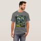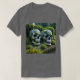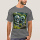 Camiseta com dois crânios assentando em rochas cobertas de musgo, criando um contraste impressionante entre a natureza e os remanescentes da vida.
