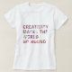 A camiseta para criativos mostra o texto "criatividade faz o mundo girar" em negrito tipografia vermelha de bokeh. Desenvolvido exclusivamente para você pelo Happy Dolphin Studio. Se precisar de ajuda ou produtos correspondentes, entre em contato conosco através do bate-papo da loja!