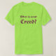 Que é seu credo? Para trás da camisa diz ao mundo o que você acredita com versos de apoio da bíblia. Eu acredito no deus o pai, Jesus Cristo, a ressurreição, a bíblia, benevolência e Jesus retornará!