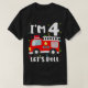 Camiseta Crianças Bombeiam Caminhão 4º Aniversário Brinqued