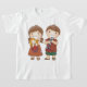 Duas crianças, um menino e uma garota segurando alguns brinquedos. Esta design parece realmente eficaz nesta camiseta