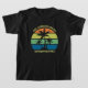 Essas camisetas legal personalizadas de crianças tropicais, com o pôr do sol, apresentam 3 palmeiras silhuetadas contra um céu laranja e azul acentuadas com amarelo e verde na costa. Personalize para a viagem da família de excelentes mantendo as camisetas das crianças para sua fuga costeira nas férias de primavera ou de verão ou cruzeiro oceânico.