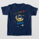 Crianças O T-Shirt do Espaço Exterior apresenta a contagem regressiva e o texto da explosão. Um astronauta com dedos presos em sinal de paz está amontoado numa lua crescente. Abaixo está um lugar para adicionar um nome. No fundo, um foguete atravessa a camisa, deixando uma lufada de fumaça. O (opcional) design mostra um navio de foguetes decolando, deixando uma nuvem de fumaça. É certo deliciar o pequeno astronauta em sua vida.