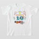 Celebre o grande dia do seu atleta com esta divertida t-shirt de aniversário desportiva personalizada! Apresentando ilustrações coloridas de futebol, basquetebol, tênis, boliches e muito mais, este esporte pode ser personalizado com o nome e a idade do seu filho. Perfeito para aniversários, festas ou como presente especial para qualquer criança que ama esporte. Confortável e na moda, esta camisa torna as fotos de aniversário mais memoráveis!