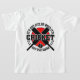 Você certamente estará fora do marco com esta camiseta de críquete na moda. Disponível em outros produtos, esta camisa de críquete foi projetada com o slogan: CRICKET - Não está fora ou sobre Está fora da marca. Mantém o tema do críquete com dois morcegos cruzados e uma bola de críquete. 'Off the Mark' é um termo usado no Cricket para quando o batsman marca sua primeira execução. Este grilo faz um super presente para quem ama críquete! Mais roupas de críquete e presentes disponíveis no compro Stand Up e torcida.
