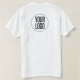 Carregue o logotipo ou símbolo comercial da sua empresa para fazer uma T-shirts leve personalizada com logotipo na frente e no verso para usar na promoção da sua empresa. Escolha o tamanho, a cor e o estilo no menu de opções, acima.