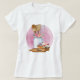 Esta camiseta apresenta uma cobertura de utensílios de cozinha com flores, cupcakes e um pino rolante sobre um fundo cor-de-rosa que você pode personalizar para si mesmo ou como presente.