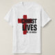 A T-Shirt dos Cristãos páscoas apresenta uma escritura inspiradora de citação, "CRISTO VIVE Ele é Risen", que é uma parte da Bíblia Verse Matthew 28:6. Ele retrata o texto em negrito com uma grande cruz vermelha.