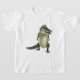 Esta camisa apresenta um crocodilo de desenho animado em pé e com aparência confiante.