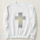 Uma cruz de prata radiante contra um fundo circular brilhante, simbolizando fé, luz e força espiritual. A design combina um estilo moderno minimalista com uma poderosa mensagem religiosa.