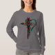 Este é um "Um dos tipos" exclusivo de T-Shirt de Longa Folha das Mulheres! Ele apresenta uma grande cruz sudoeste e coração em turquesa, laranja, castanho e preto!