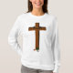 Cruzamento de madeira com uma coroa espinhosa no topo e uma rosa vermelha solteiro no fundo. Esta design pode significar coisas diferentes para pessoas diferentes, o que significa para vocês?