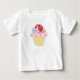 Uma camiseta de bebê Cupcake de Amor. A camisa personalizável tem um cupcake rosa giro com pequenos corações vermelhos, um morango com chocolate mergulhado e um coração roxo com as palavras Eu te amo.