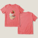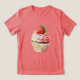 T-shirt com uma ilustração brilhante com um cupcake delicioso. Sorvete branco e um morango grande adoram este doce doce doce.