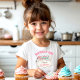 Camiseta 'Partido Decorante do Cupcake' para o Aniversário feminino, com designs adoráveis de tema-panificação em rosa, azul e creme. Perfeito para uma festa de aniversário divertida e criativa. Personalize facilmente o texto. - Kate Eden Art