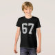A cute kids t-shirt with a custom 67 number design, personalized for birthdays or school.