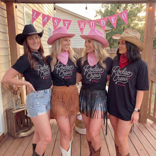 Celebrate your Last Rodeo in style with the Rodeo Crew t-shirt — a bold western-inspired piece made for bachelorette parties and unforgettable weekends with your girls.