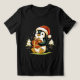 Adorable penguin in a Santa hat holding a gift box, surrounded by glowing trees—perfect for cute Christmas apparel, mugs, and festive decor!
