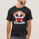 Beautiful and cute kawaii illustration of a sitting puppy holding a heart.