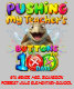 Celebrate a milestone in your child's education with our vibrant design for the 100th day of school! These delightful graphic features an adorable turtle with big, sparkling eyes and a cheerful smile, playfully surrounded by lively splashes of water. Accompanying this charming imagery is a cheeky quote that reads, "Pushing my teacher's buttons for 100 days," adding a fun twist to the celebration.