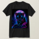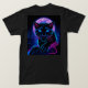 Uma renderização digital de um Pantera Negra Cibernético cercado por luzes neon futuristas. A lua cor-de-rosa e o intrincado circuito transmitem uma mistura única de natureza, tecnologia e surrealismo em um estilo mesmerizador.