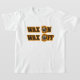 Escute seu sensei. Artes marciais engraçadas, retros "cera na cera fora" do design com símbolos instrutivos da mão.
