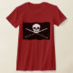 O t-shirt legal com design da flauta na bandeira de pirata preta é divertimento para qualquer um que joga a flauta. Os jogadores de flauta na banda ou na orquestra apreciarão este logotipo lunático da flauta.