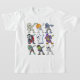 Uma design engraçada com nove personagens populares do Dia das Bruxas — múmia, esqueleto com cabeça de abóbora, zombie, vampiro, fantasma, bruxa, zombie exposta ao cérebro, Frankenstein, e esqueleto — todos fazendo a trendy dança "dab", zombie da Camisa T engraçada, Figurinos do Dia das Bruxas