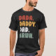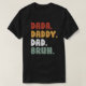 Este design apresenta uma camiseta preta com as palavras "DADA.", "PAI.", "PAI." e "BRUH." empilhada verticalmente numa fonte estilizada com diferentes cores.