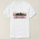 T-shirt apresenta a silhueta de linha do horizonte da cidade de Dallas, Texas, com as coordenadas de escala de cor da água e de latitude e longitude