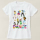 Palavra colorida Dança e imagens de desenhos animados de jovens dançarinos machos e fêmeas. Um gato também está dançando, outro gato corre rapidamente para se juntar a ele para dançar juntos. Uma camiseta engraçada e positiva para qualquer um. Um bom presente de aniversário. Não se esqueça de escolher outro estilo, tamanho, cor e gênero do roupa. Você pode transferir este design para outro produto, em particular: um saco de tote, chapéu de caminhoneiro, avental, botão, morcego de mercearia reutilizável, t-shirt do painel e um depósito impresso em todas as partes. Use o botão "Editar Design" para reposicionar a imagem no produto. Mostre seu estilo inigualável quando você sair. Apenas comprar um, e seja feliz!