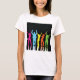 Alguns dançarinos coloridos silenciaram sobre um fundo preto. Esta design parece muito eficaz nesta Camiseta das Mulheres