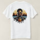 Vestir em estilo com nossa Camiseta Afro-Americana Triádica. Apresentando uma ilustração de arte centralizada de um homem afro-americano, casualmente mais apto, esportivo de óculos escuros e um sorriso sorridente. O design incorpora cores triádicas com sotaques dourados, criando um efeito visualmente marcante. A paisagem do Mississippi serve como pano de fundo, aprimorada com um efeito de gotejamento de logotipo para adicionar talento. Elevem sua moda com essa camiseta única e na moda, combinando sofisticação e encanto urbano. Perfeito para aqueles que apreciam roupa elegante e moda.