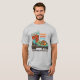 Última viagem de acampamento antes do casamento! Adicione essas camisetas combinando ao seu acampamento de festa de despedida de solteiro / viagem de caminhada! Edite com o nome do noivo e detalhes. Este design apresenta uma ilustração de uma cena de acampamento dentro de uma bota de caminhada.